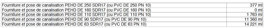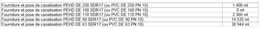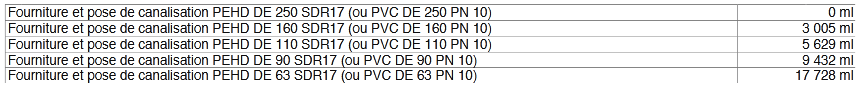 - Fourniture et pose de tuyauteries en Pehd DE 250 à 63, SDR17 (ou PVC DE 250 à 63, PN 10), sur environ 57,3 km et d'équipements pour la mise en place du réseau AEP de : Kouroumani, Sallé, Sélinkoro, Houna Kiébani et Yélintouta, y compris toutes sujétions ;
